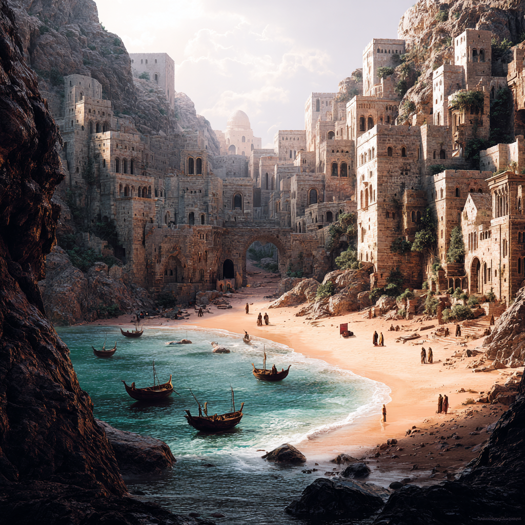 Die Hafenstadt Soneram ist direkt an der Küste der Insel gelegen und der Hauptzugang zur Insel. Um sie adäquat zu schützen, säumen Verteidigungswälle inklusive Ballisten die Stadt.