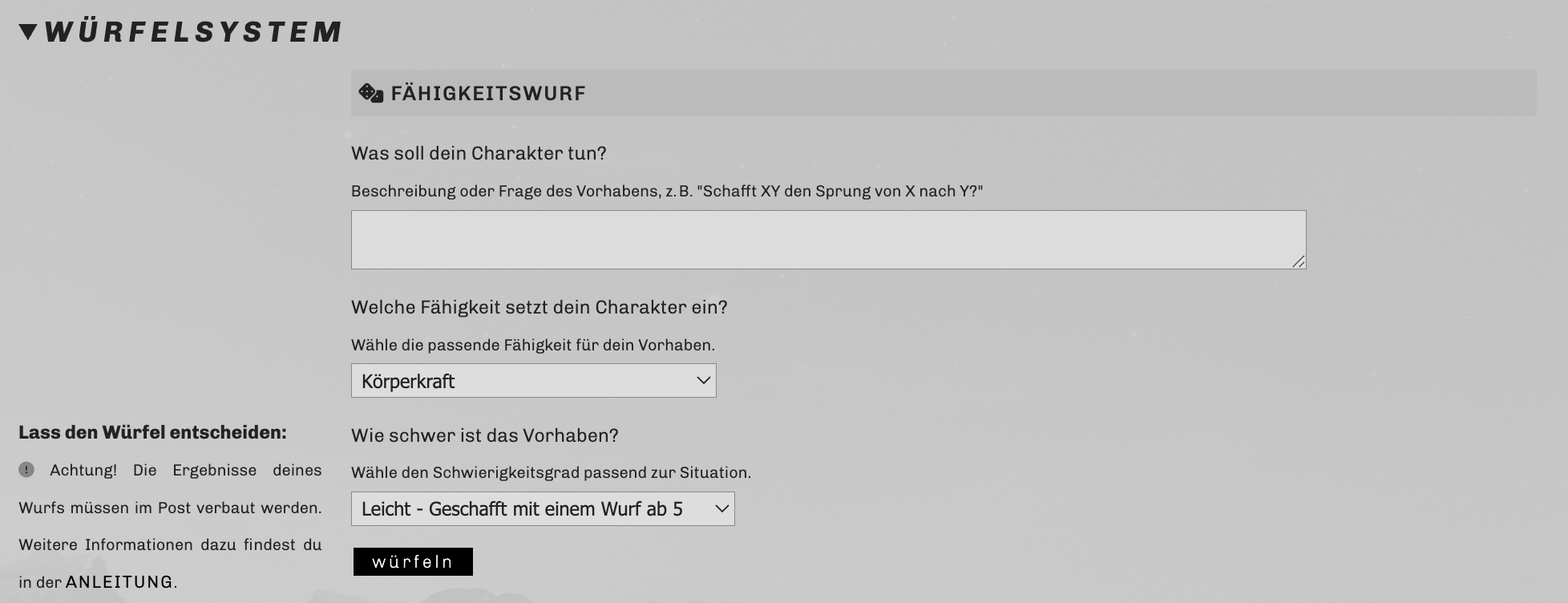 | Würfelsystem nutzen
