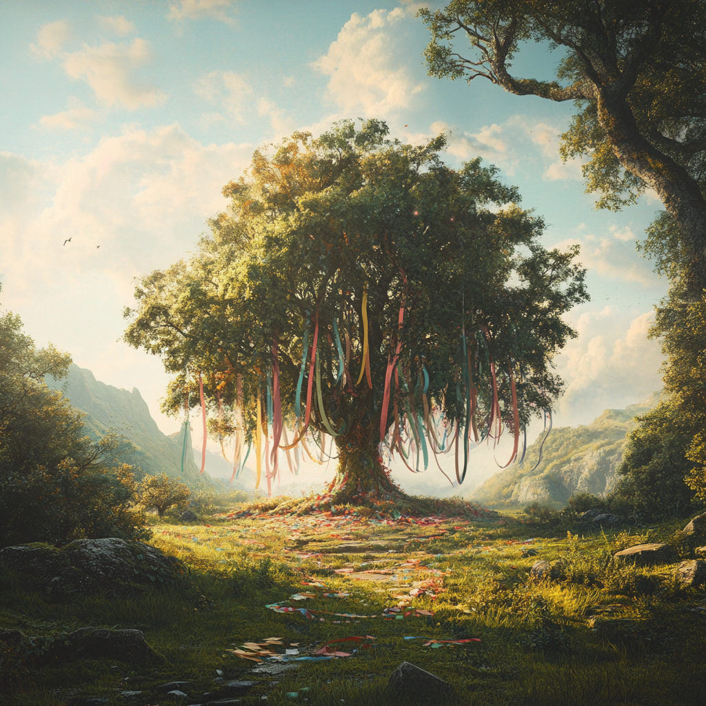 Brauchtum: Viele Gemeinschaften stellen einen zentralen Baum oder eine Pflanze auf, die mit Bändern, Blättern oder kleinen Botschaften geschmückt wird. Jede Farbe oder jedes Symbol steht für einen Wunsch, ein Dankgebet oder eine Hoffnung.