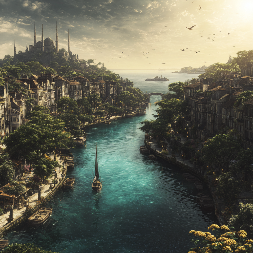 Die Insel ist durch die Grachten und das viele Wasser sehr grün und pflanzlich divers. Die Bewohner:innen kümmern sich gemeinsam um die Pflege der Natur, um sie herum und leben in Einklang mit dieser.