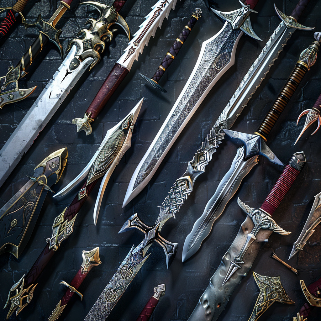 Nahkampfwaffen wie Schwerter, Dolche, Streithämmer, Hellebarden, Speere, Morgensterne oder Streitkolben