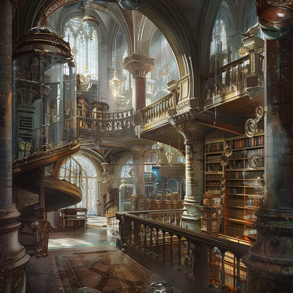 Die Bibliothek bietet eine umfassende Sammlung von Büchern, Schriftrollen und anderen Medien, die allen zur Verfügung steht.