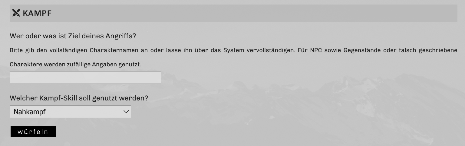 Da wir einer Welt spielen, in der Kämpfe quasi an der Tagesordnung, oder bei Kadett:innen zumindest auch im Stundenplan, stehen, könnt ihr auch unser Kampfsystem nutzen, um das Ergebnis eurer Angriffe in die Hand des Würfels zu legen. Genau wie der Fähigkeitenwürfel findet ihr ihn unter dem Postfeld im Antworten-Fenster eines Threads.